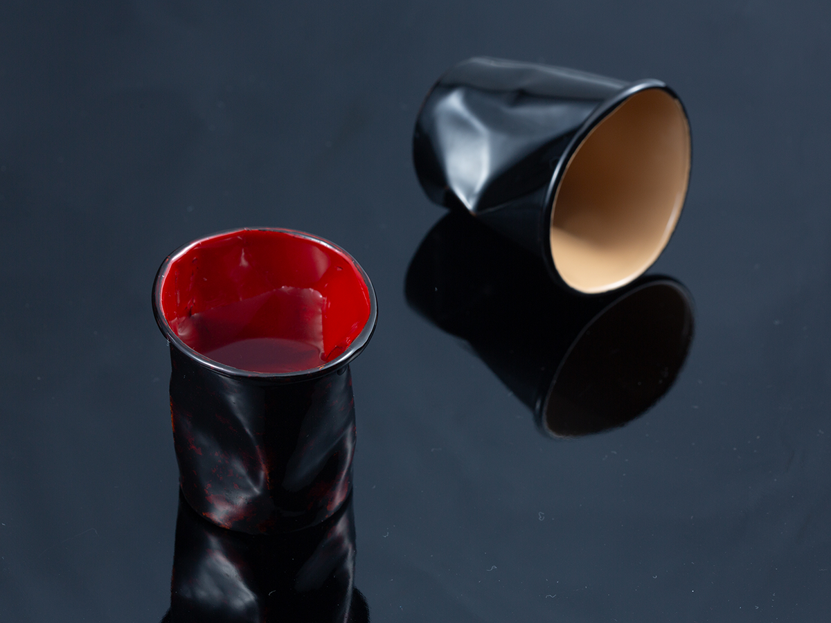 10秒で捨てる紙コップは何層もの漆を纏い100年のジュエリーグラスに生まれ変わりました。